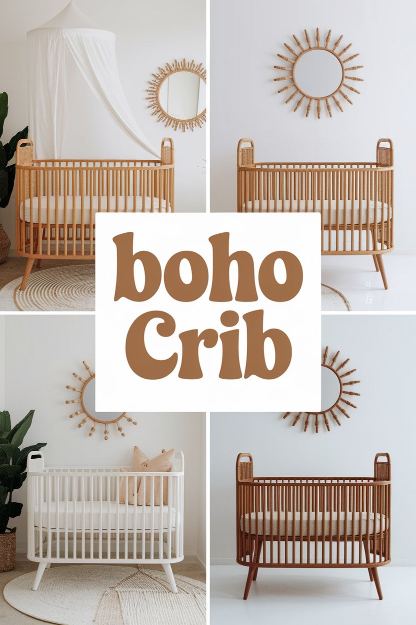 Boho crib setups can be brought to life with unique textiles, natural elements, whimsical decor, and personalized touches that create a serene space for your little one—are you ready to be inspired?