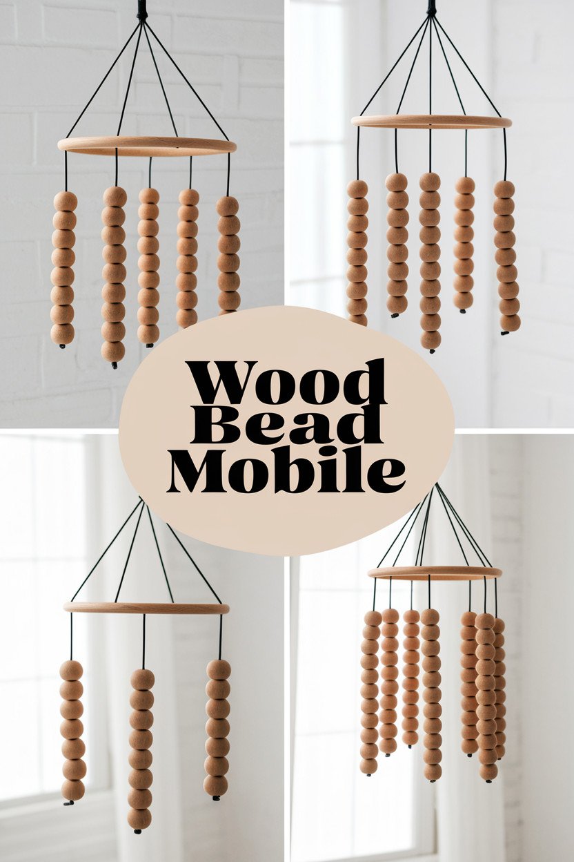 This minimalist mobile is not just stylish but also economical. Natural wood beads are inexpensive, and you can often find them at craft stores. It’s a great way to enjoy a high-end look on a budget.