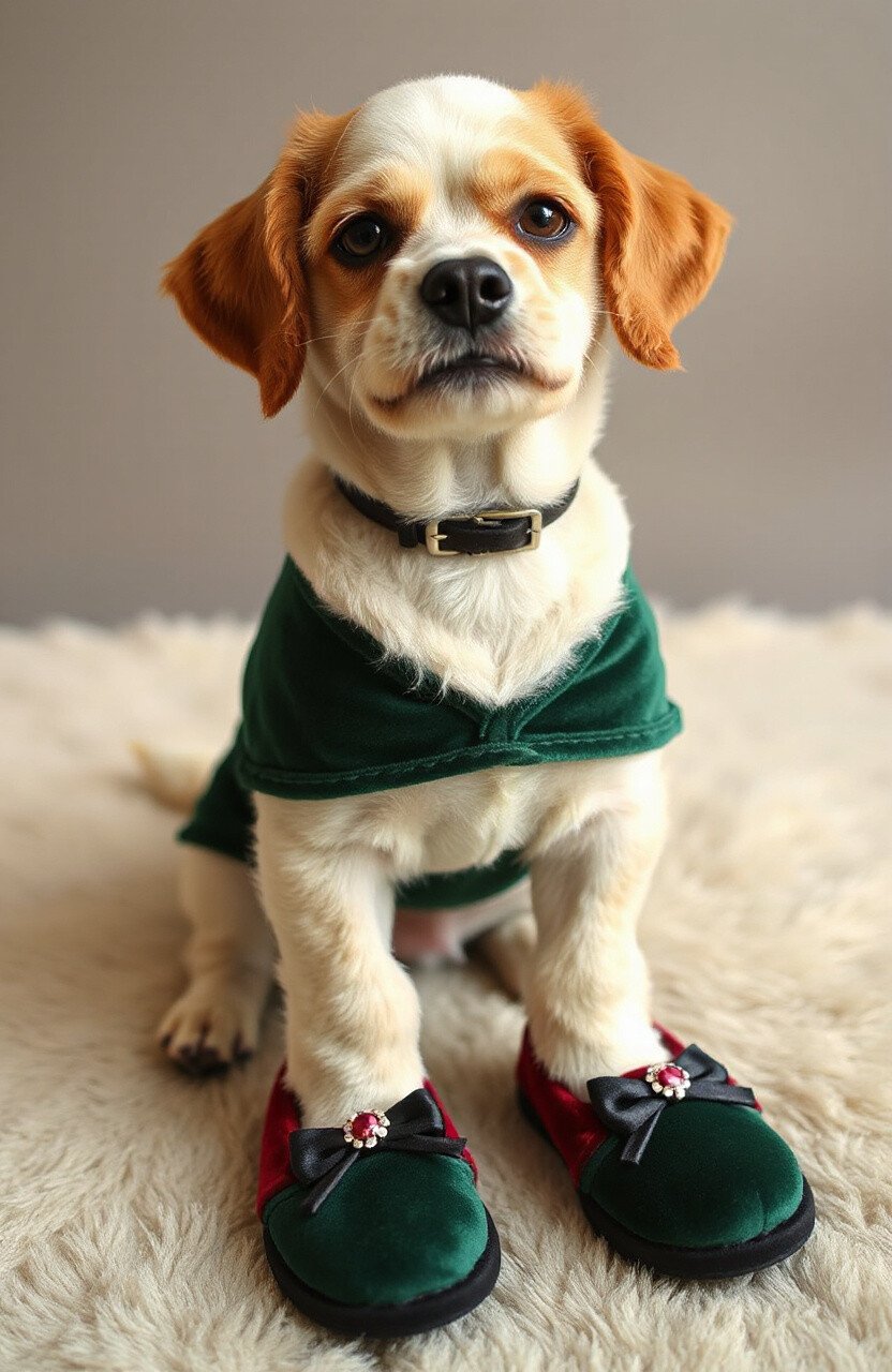 Available in rich colors like burgundy or emerald, they add a regal touch to any outfit. Add a small brooch for an extra dose of elegance. These slippers are a delightful way to pamper your pet with luxury.