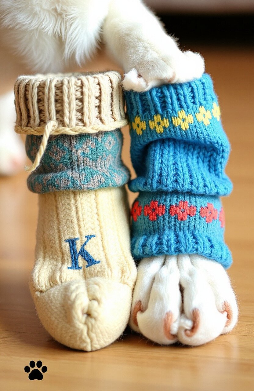 When winter arrives, knit winter socks are the coziest choice for your pet’s paws. These socks provide warmth and comfort, making them ideal for chilly days indoors. The knitted patterns add a touch of homemade charm.