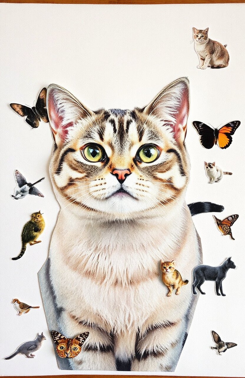 Unleash your creativity with a DIY cat collage. Gather images of cats from magazines, prints, or your own photographs and create a unique collage.