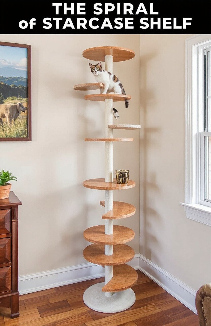 Imagine a spiral staircase just for your cat. Each step is a perch, providing a journey to the top.