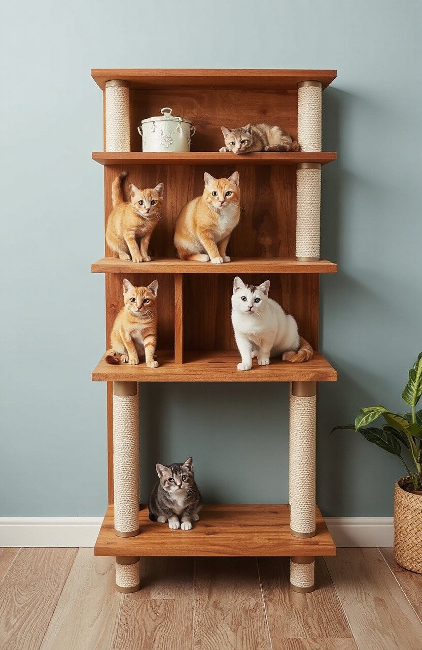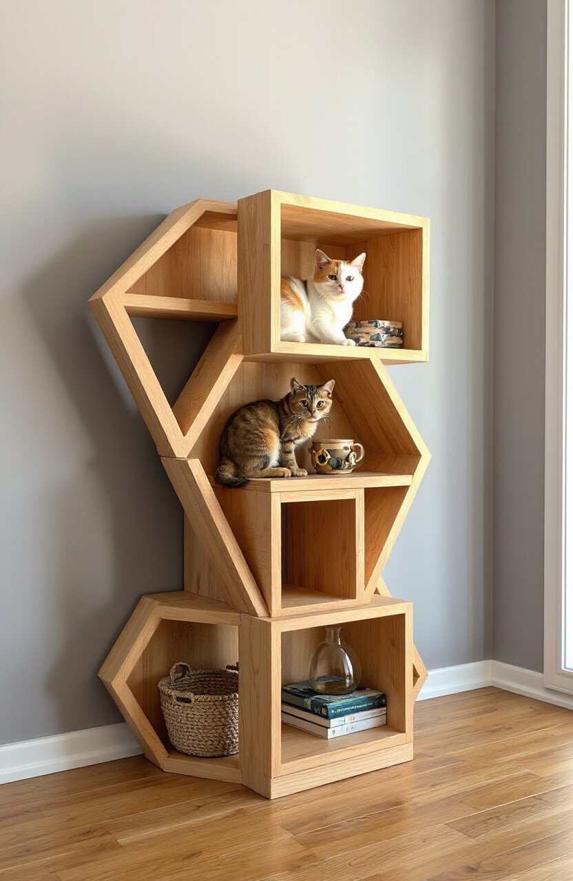Sleek and stylish, the modern cube shelf is perfect for contemporary homes. Its geometric design offers multiple compartments for cats to explore and hide.
