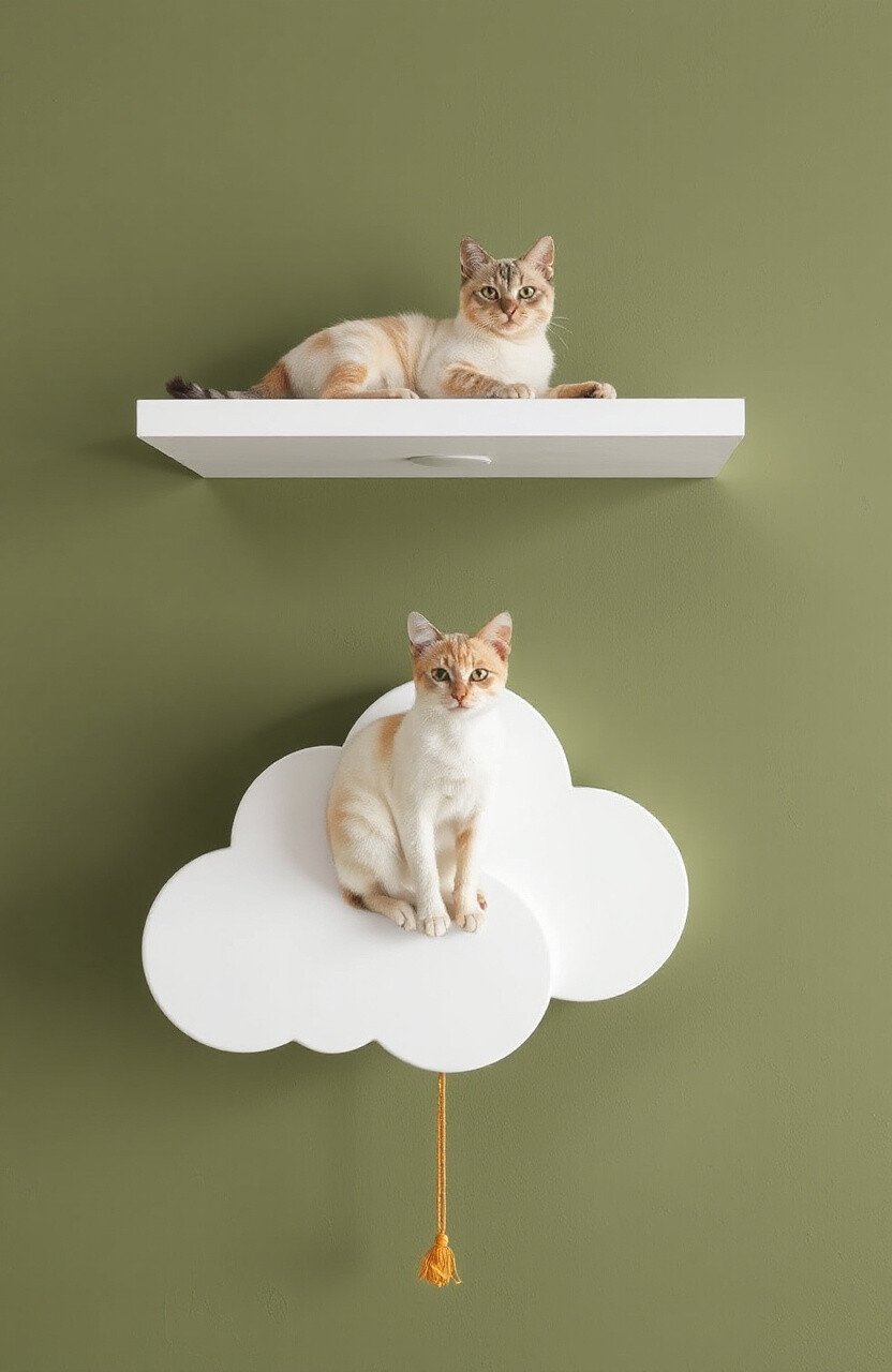 Picture a sleek white shelf floating like a cloud on your wall. It’s not just a shelf; it’s a dream perch for your cat. The cloud-like design offers a whimsical touch to any room, blending seamlessly with modern décor.