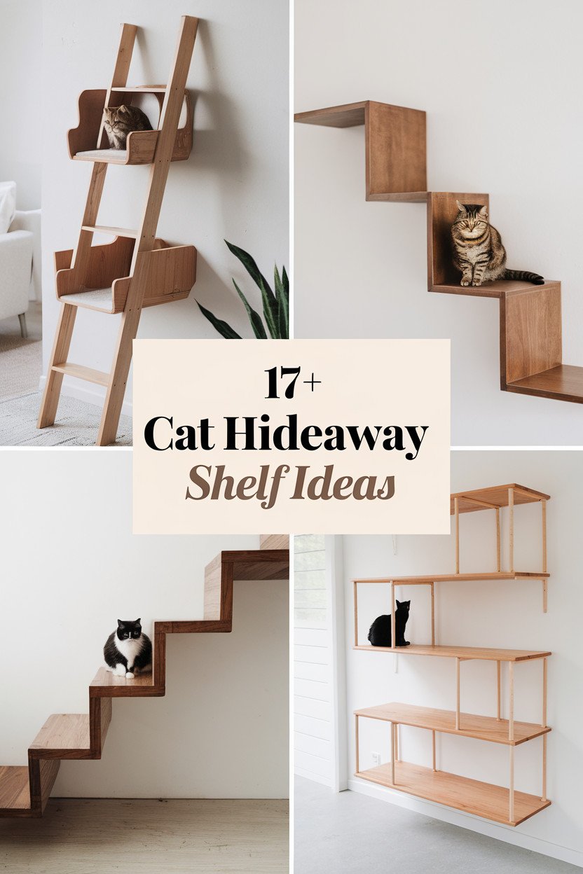 Make a statement with an artistic wall shelf that doubles as a cat perch. Think abstract shapes or bold colors.