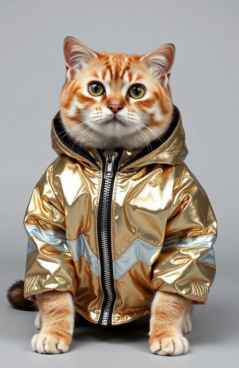 Step into the future with a foil jacket for your cat. This idea is all about embracing metallics and shiny fabrics for a space-age look.