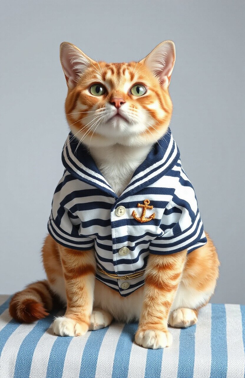 Sail away with this nautical-themed cat jacket. Perfect for summer, this design features classic stripes and a sailor collar for a seaworthy look.