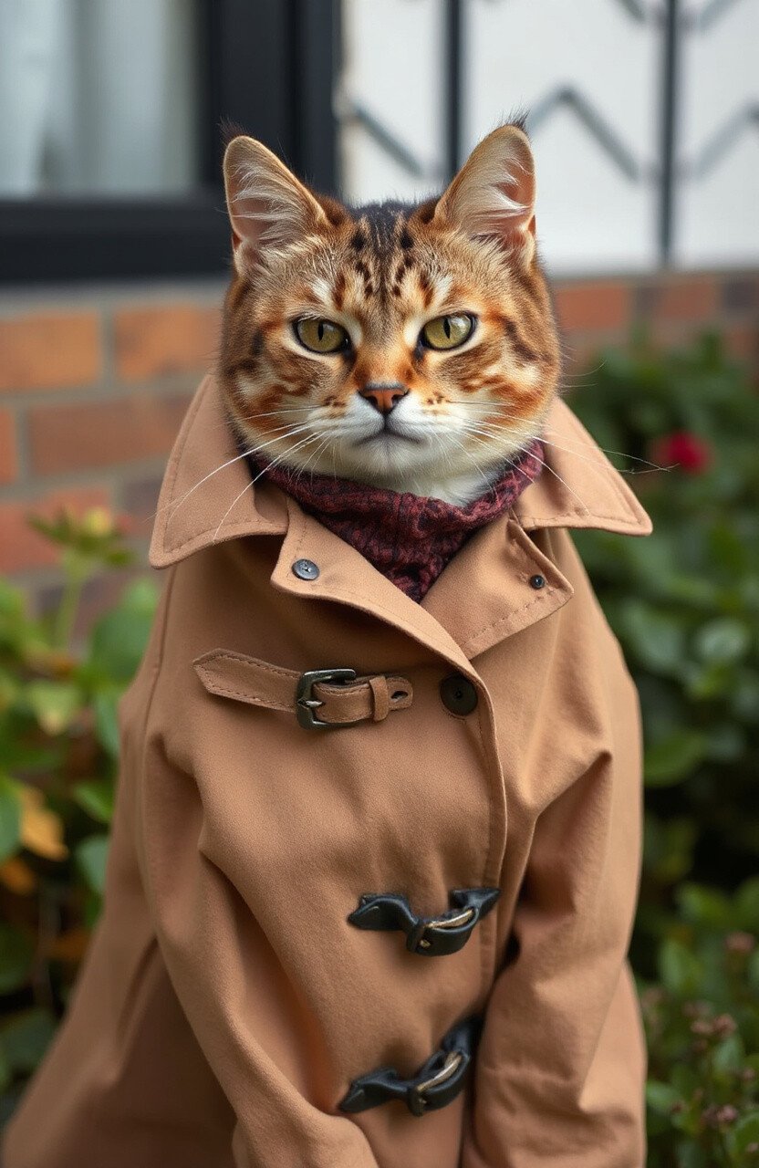 Choose water-resistant fabric for practicality, and don’t forget the belt for that iconic look. This jacket is all about sophistication and function. It’s an investment piece that your cat can wear year after year.