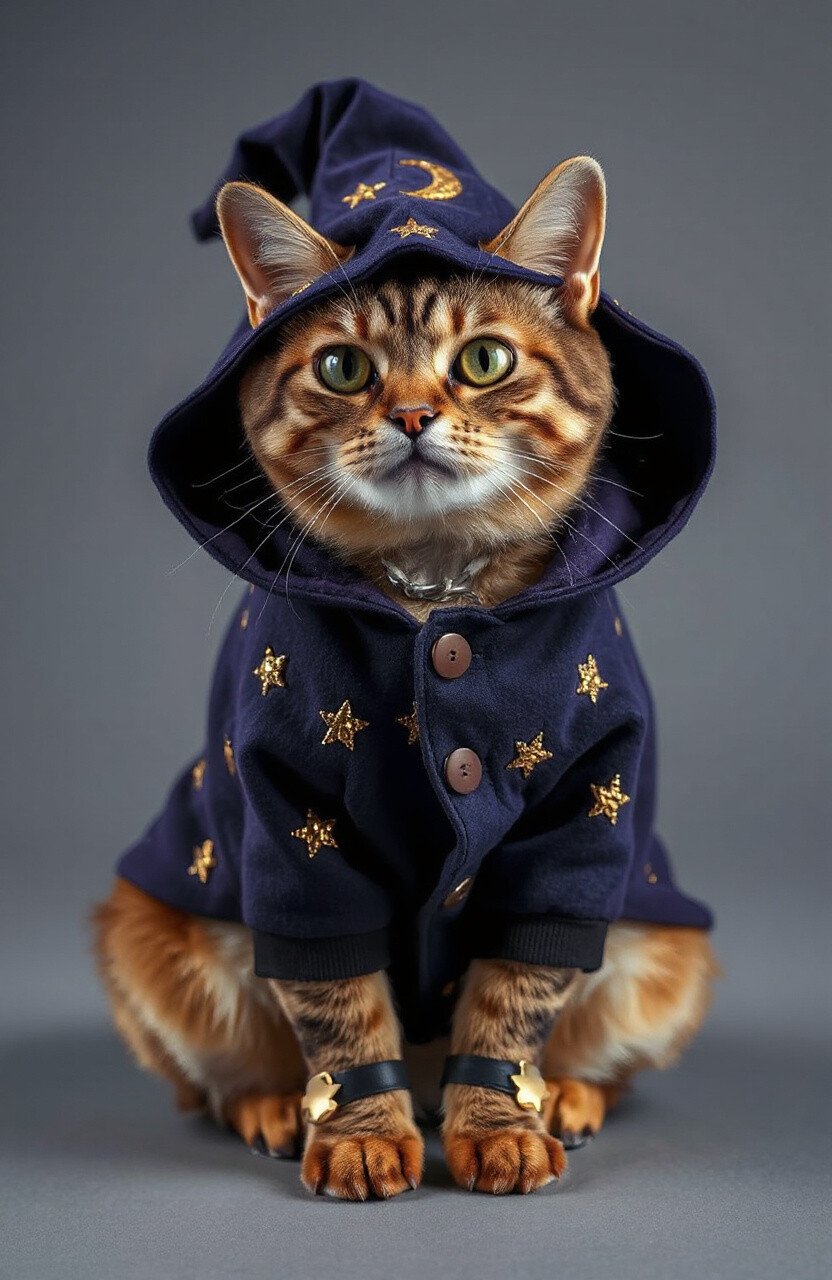 Bring a touch of magic to your cat’s wardrobe with a whimsical wizard jacket. This idea is all about fantasy and fun.
