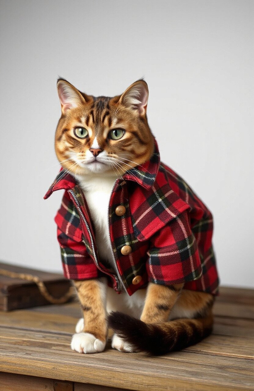 Plaid never goes out of style, and it’s a great choice for a rustic cat jacket. Perfect for autumn, this design brings warmth and tradition to your cat’s wardrobe.