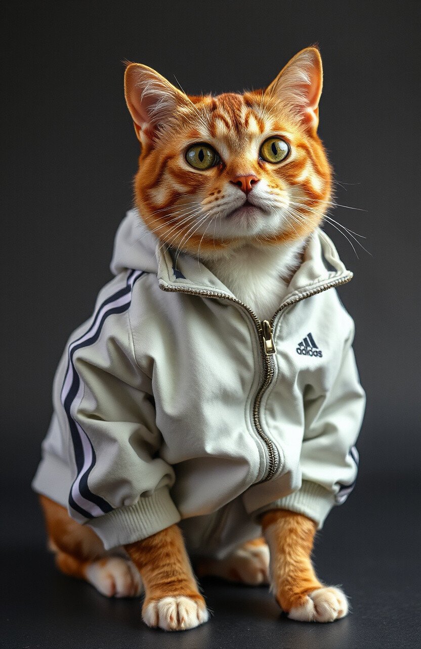 For the active feline, a sporty tracksuit jacket is a great option. This design is all about comfort and mobility.