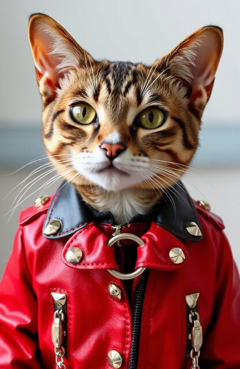 For the rebellious feline, a punk rocker jacket is a must. This design embraces attitude and style with studs, spikes, and bold colors.