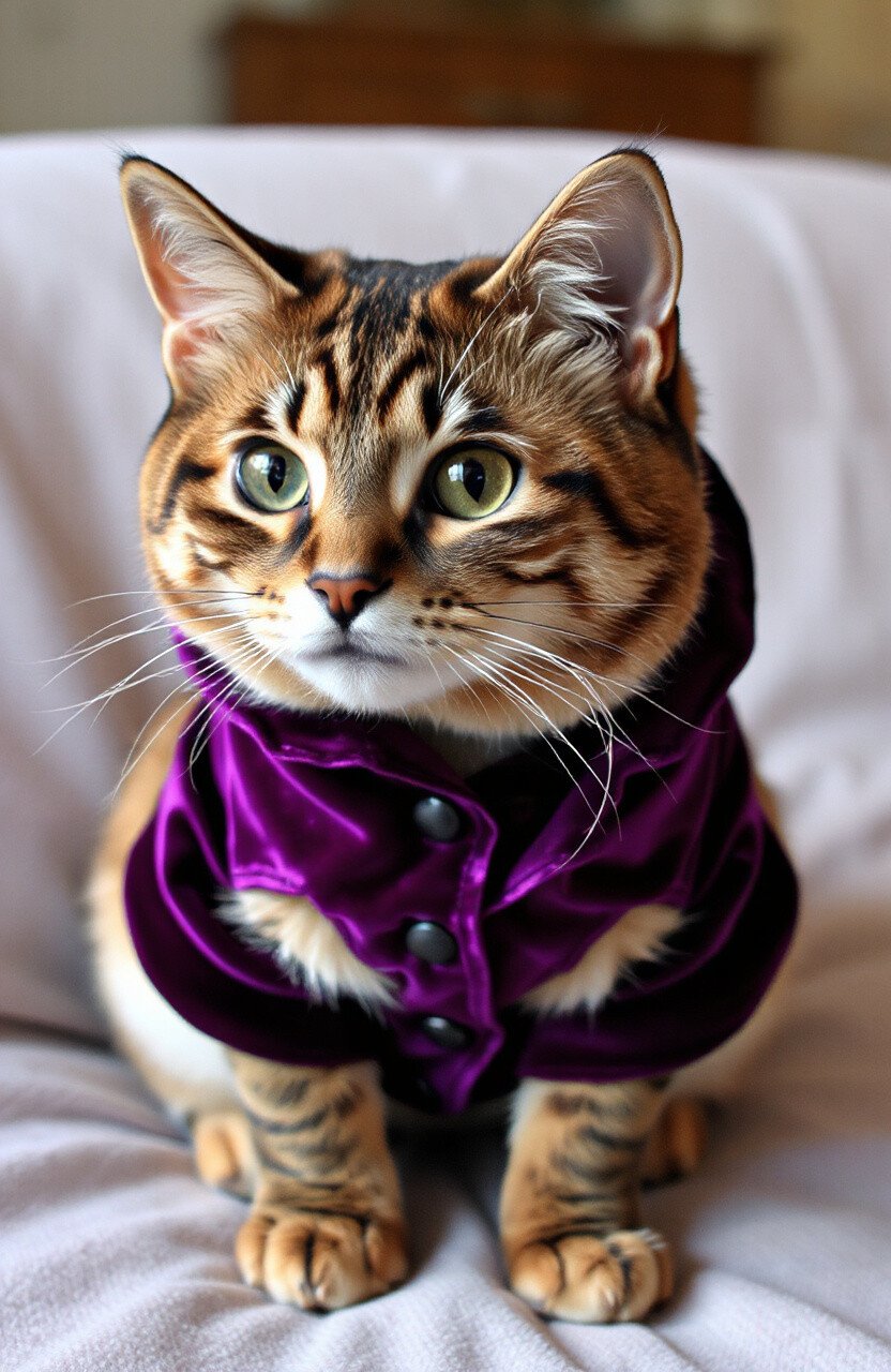 For a touch of luxury, consider a velvet jacket. The soft, plush fabric adds sophistication to your cat’s look. It’s ideal for special occasions or whenever you want to spoil your cat.