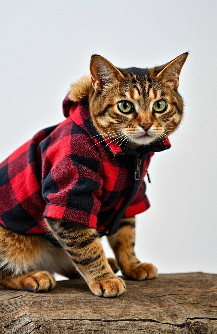 Your kitty will look like a tiny lumberjack in a plaid flannel jacket. The soft, warm fabric is perfect for chilly evenings. It’s a timeless style that suits any cat.