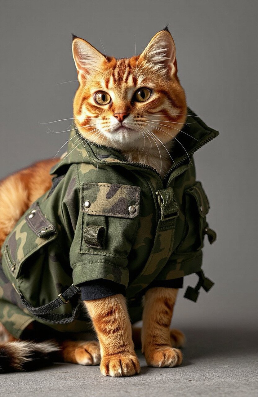 For the adventurous cats, a camouflage tactical jacket is perfect. The rugged design is great for outdoor explorations. It also has functional pockets for treats and toys.
