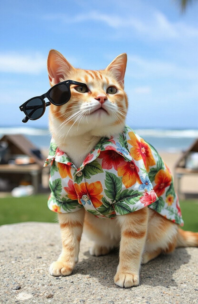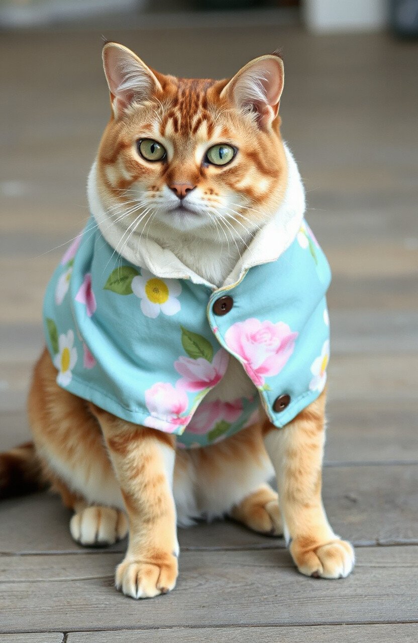 An aloha-themed Hawaiian shirt jacket brings tropical vibes to your cat’s wardrobe. The bright colors and floral prints are perfect for summer fun. It’s lightweight and comfortable for warm days.
