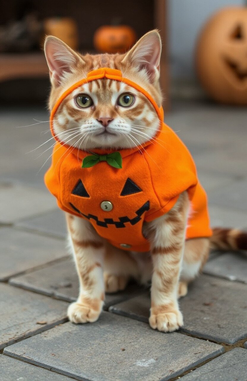 Get your cat ready for Halloween with a pumpkin-themed jacket. The bright orange color and pumpkin face design are adorable and festive. It’s a fun way to celebrate the spooky season.