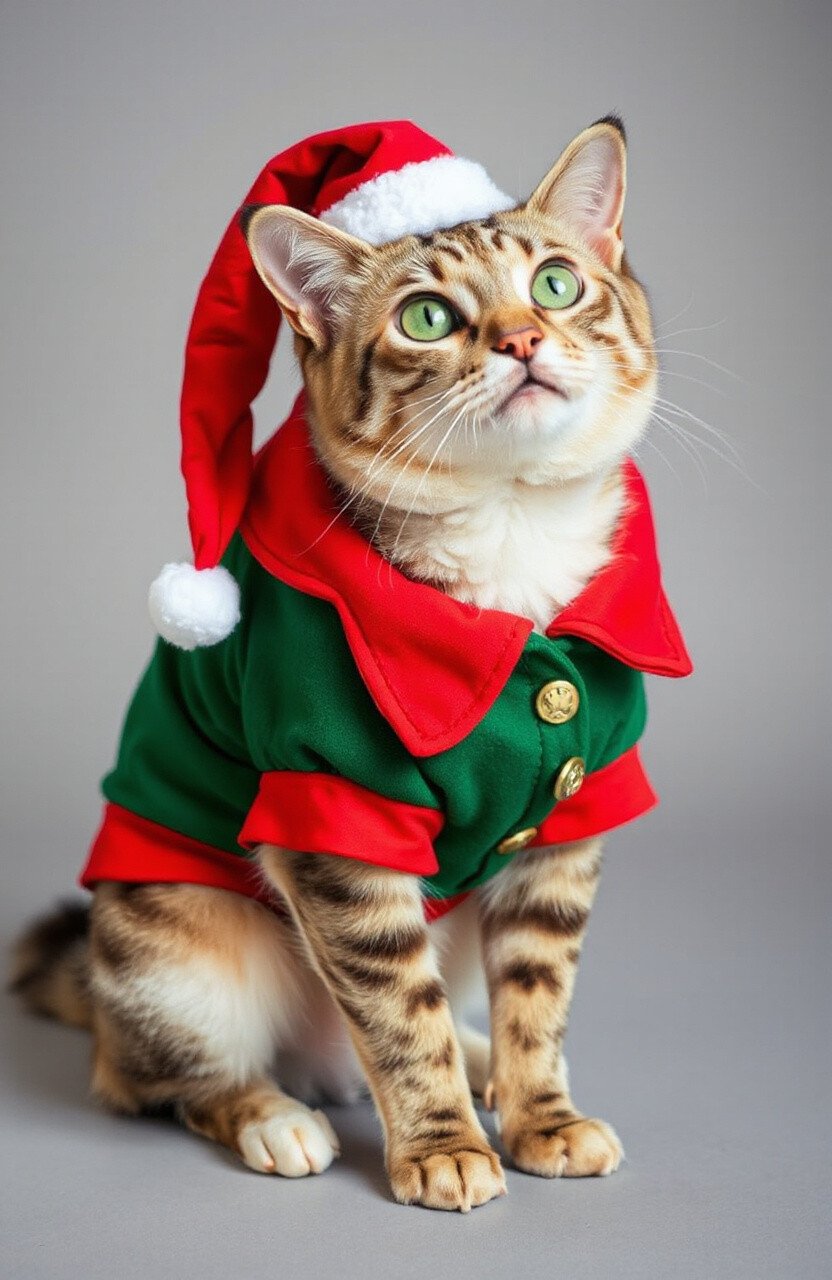 Get festive with a holiday elf jacket for your kitty. The green and red design, complete with a tiny hat, spreads holiday cheer. It’s perfect for Christmas photos and gatherings.