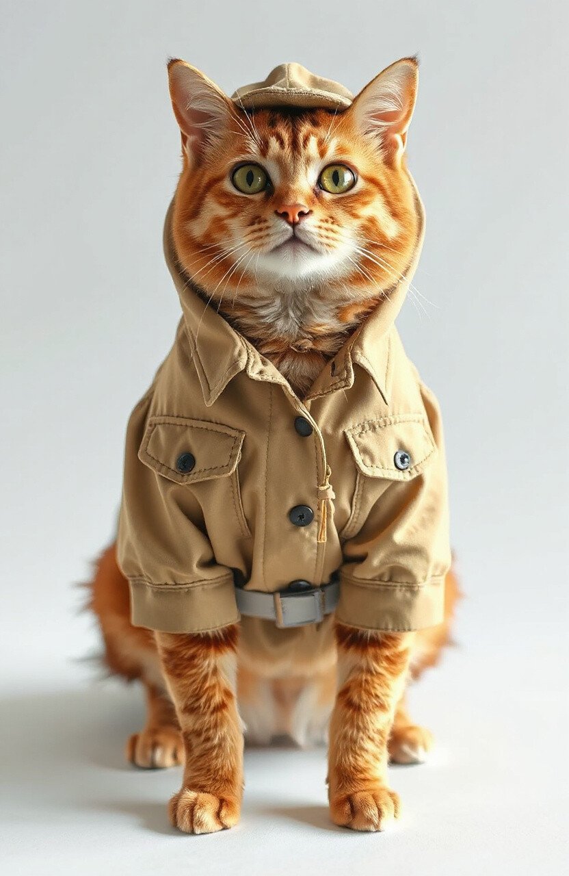 Get ready for a wild adventure with a safari-themed jacket. The khaki color and pocket details give your cat an explorer look. This is perfect for a fun photo shoot or a themed party.