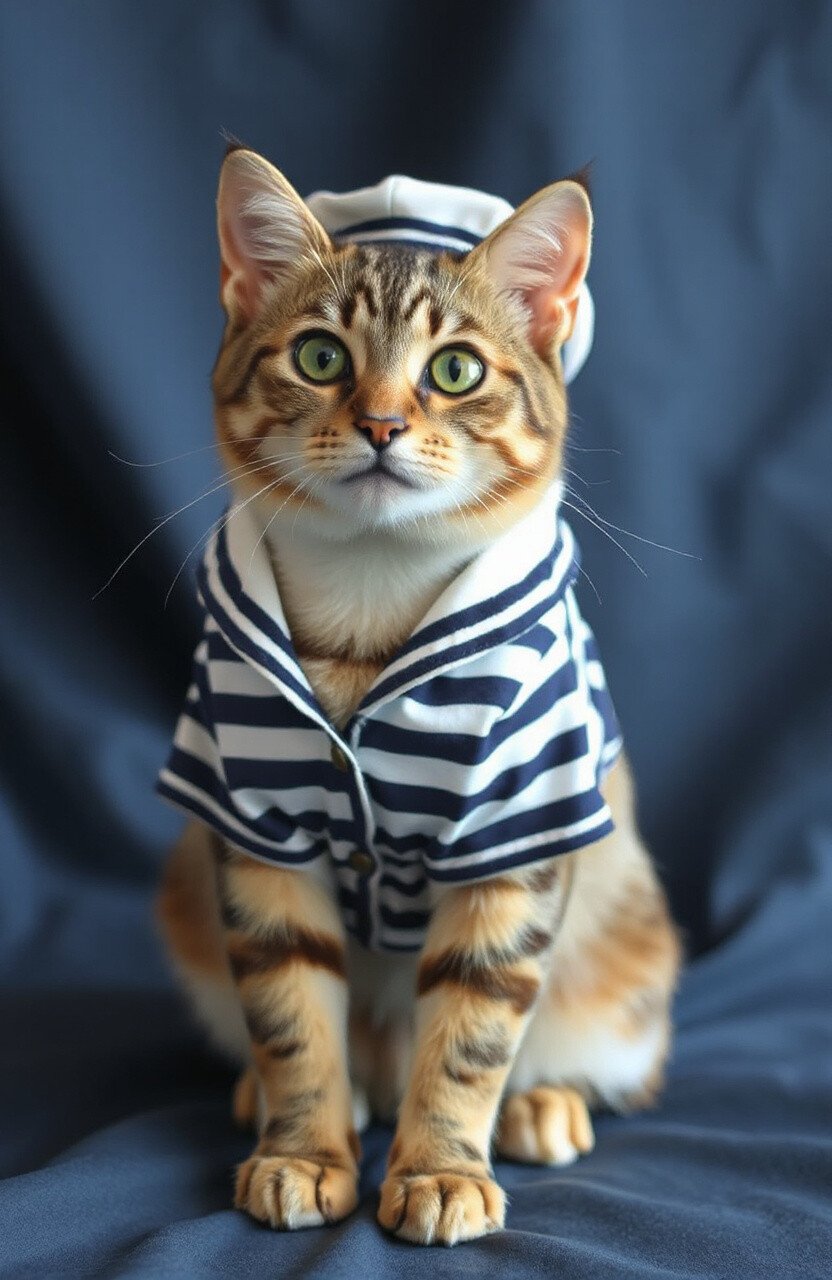 Sail into style with a nautical striped jacket. The timeless sailor look suits any cat, adding a touch of the sea to their wardrobe. The breathable fabric is perfect for summer outings.