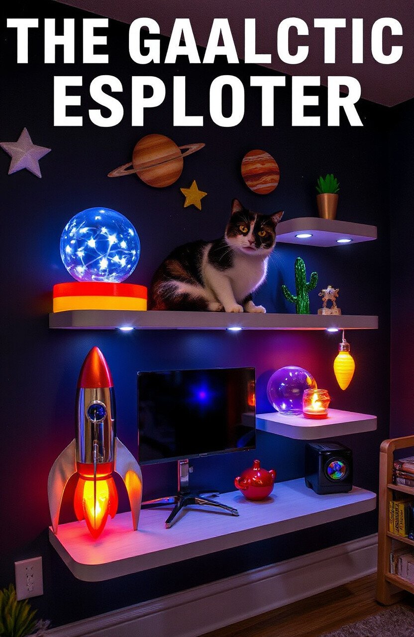 Send your cat on an interstellar journey with space-themed shelves. Planets, stars, and rockets create a universe of fun for your furry friend.