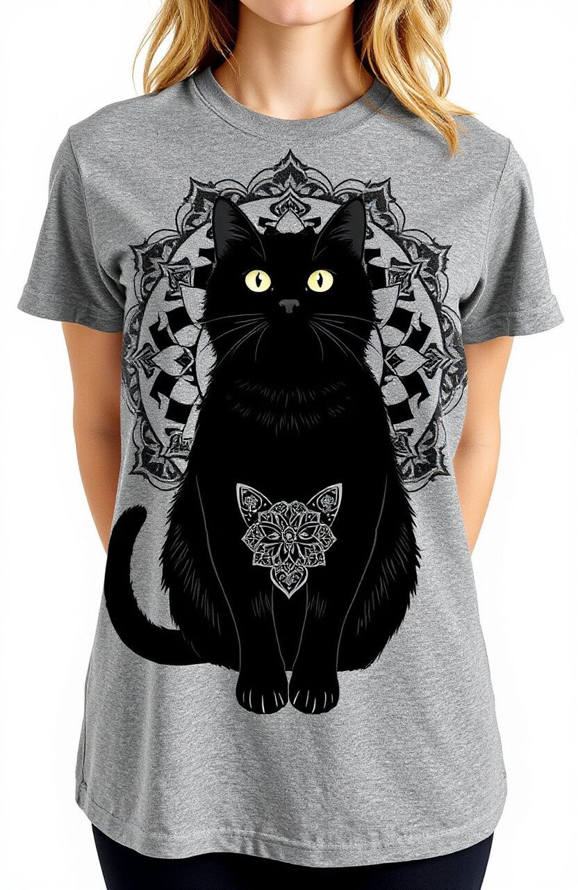 For a spiritual twist, a cat mandala tee combines intricate patterns with feline elegance. It’s both calming and fashionable.