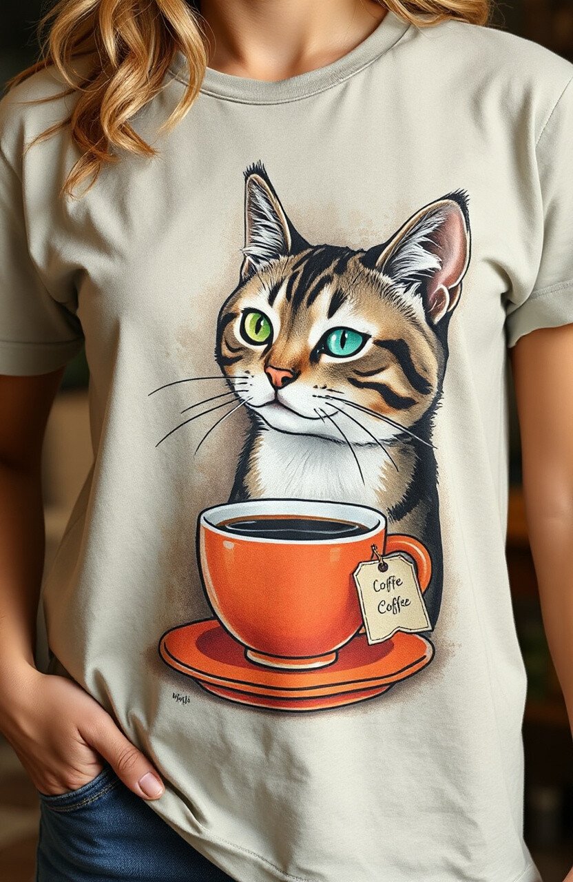 Combine your love for cats and coffee with a cat and coffee tee. This design is perfect for caffeine enthusiasts.