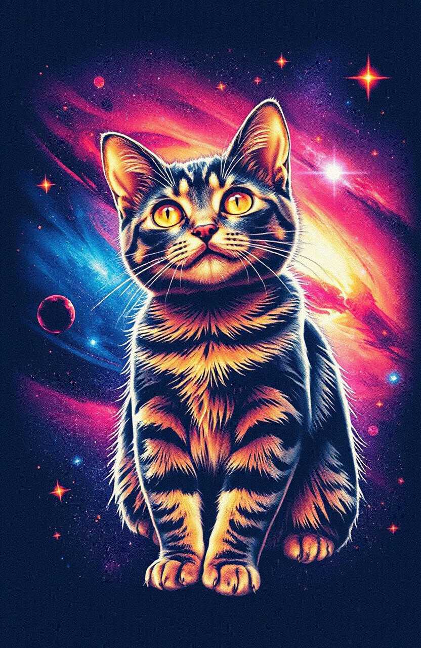 Blast off into style with a cosmic cat tee! This design combines the mystique of outer space with the cuteness of cats. The vibrant colors and starry background create a mesmerizing effect.