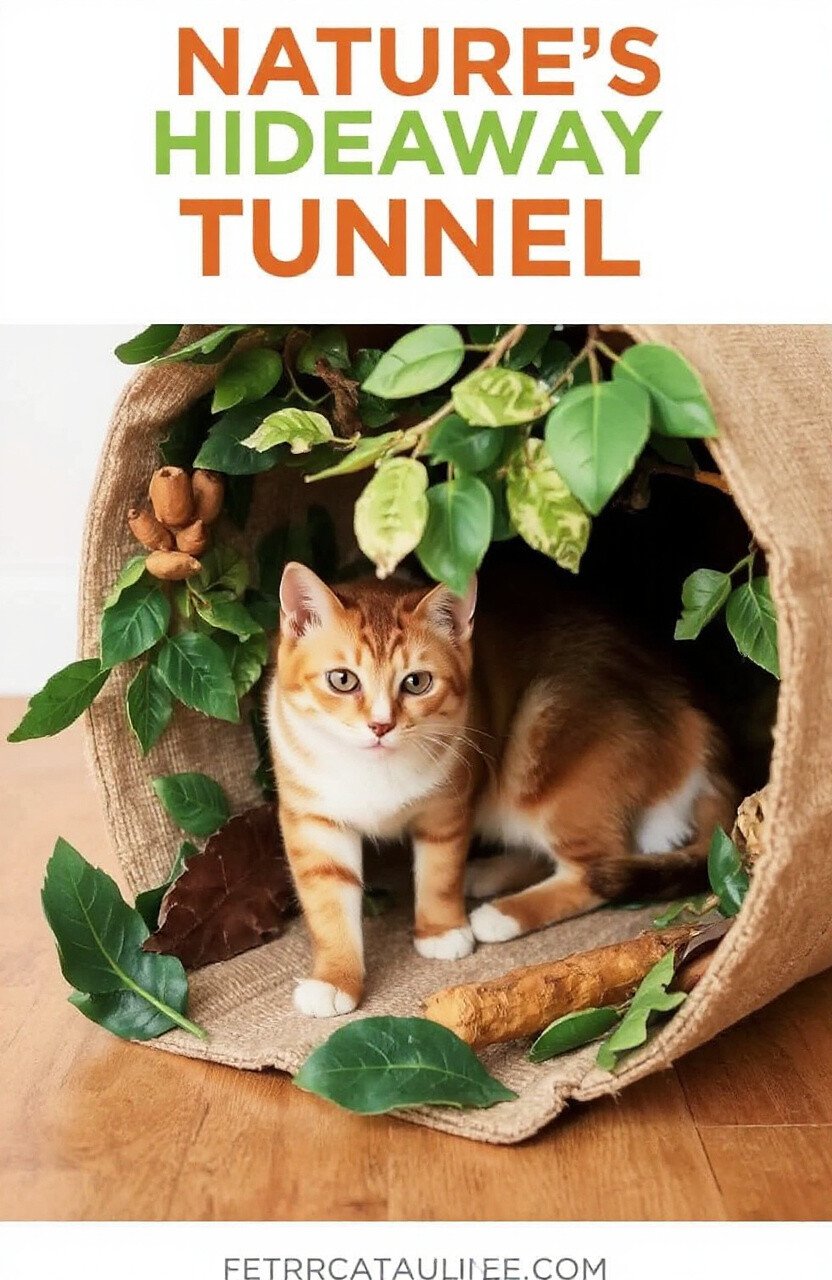 Incorporate faux leaves and branches to enhance the natural feel. Your cat will love the sensory experience, as the textures mimic the outdoors. This tunnel is ideal for nature-loving kitties.
