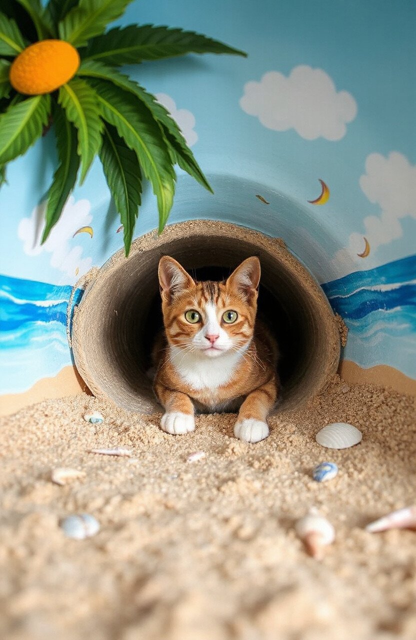 Include seashells and beach balls for an authentic feel. This tunnel is perfect for cats who love a taste of the tropics. It’s a sunny adventure that’s full of relaxation.
