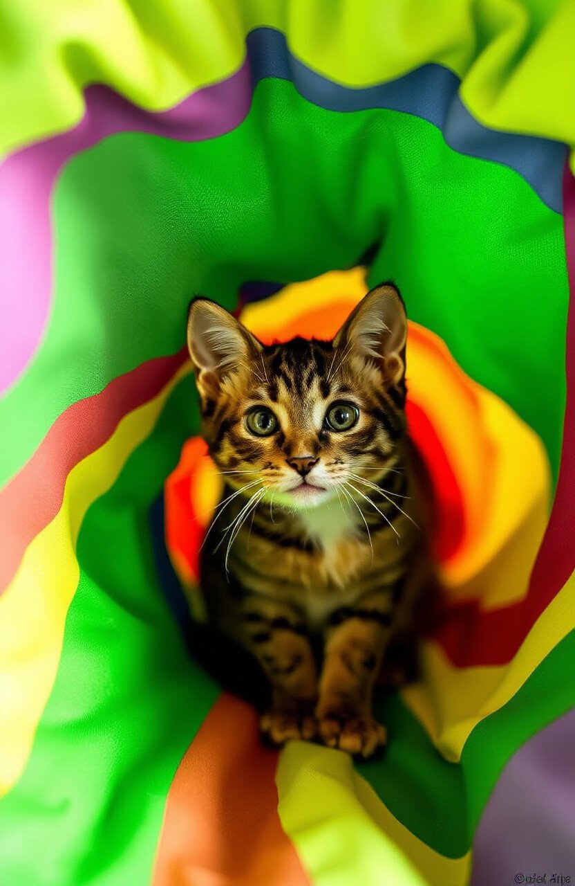 Picture a tunnel bursting with colors, like a rainbow brought indoors. This vibrant tunnel is a kaleidoscope of joy that will catch your cat’s eye instantly. The bright hues can stimulate your cat’s senses, adding a splash of sunshine to their day.