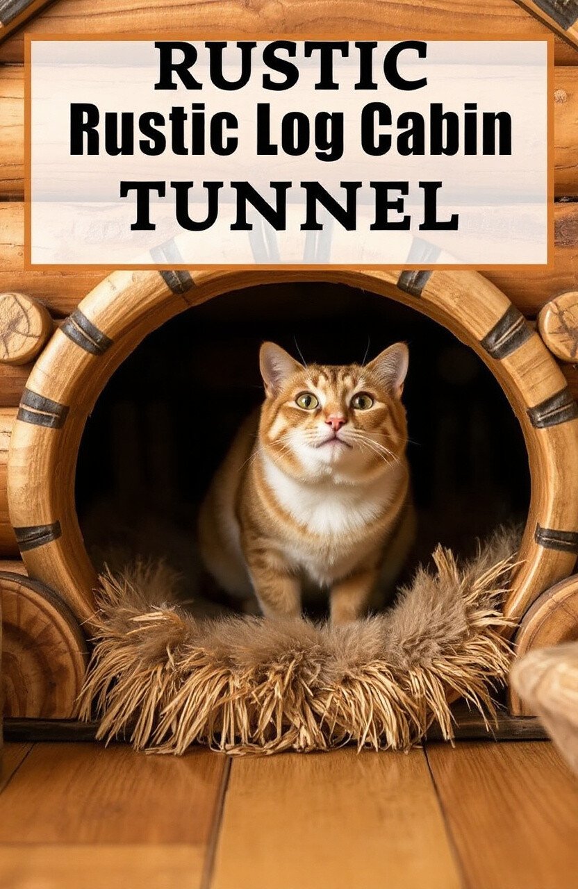 Create a cozy retreat with a log cabin-themed tunnel. Using wood-like textures and earthy colors, this tunnel feels like a snug hideaway in the woods. It’s a charming escape for your cat.