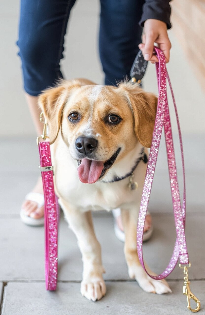 Add some sparkle to your walks with a glittery leash combo. Perfect for dogs who love to shine.