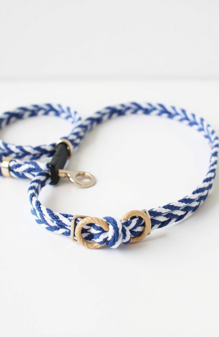 Set sail on your dog walk with a nautical-themed leash and collar. The blue and white stripes scream summer fun.