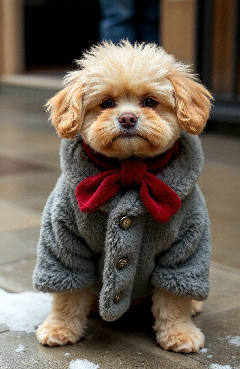 For ultimate luxury, dress your dog in a plush coat. These are soft, warm, and perfect for winter outings.