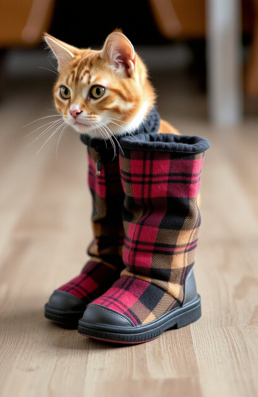 Timeless and classy, these plaid boots are perfect for cats with a refined taste. The classic plaid pattern never goes out of style, offering a sophisticated look. They’re durable and designed for everyday wear.