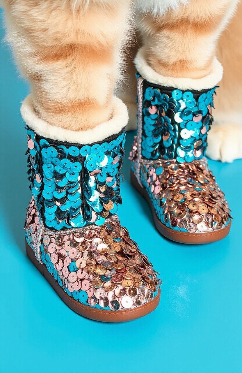 Shimmer and shine with these sequin-covered boots. They add a touch of glamour to any outfit, perfect for cats who love to sparkle. The sequins catch the light beautifully, creating a dazzling effect.