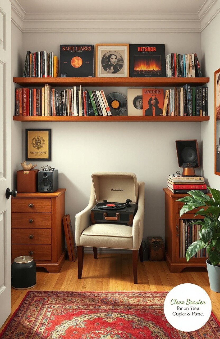 Imagine a nook with a comfortable chair, a record player, and shelves for vinyl records. It’s a space dedicated to music appreciation.