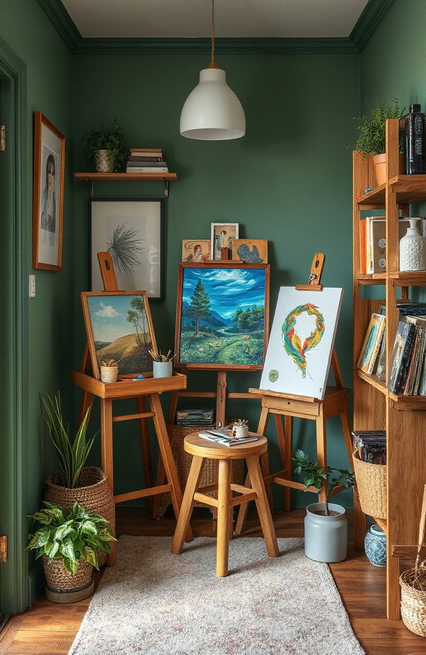 If you love art, why not have a corner dedicated to your creative pursuits? An easel, a stool, and art supplies can turn any small space into a studio.