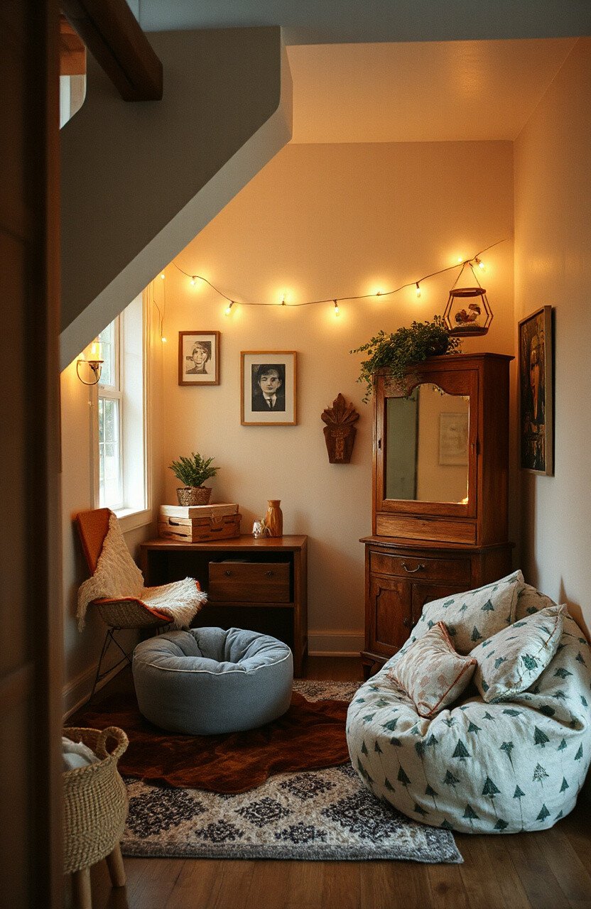 Use affordable materials like sheets and string lights to create this cozy spot. It’s a dreamy, budget-friendly idea.