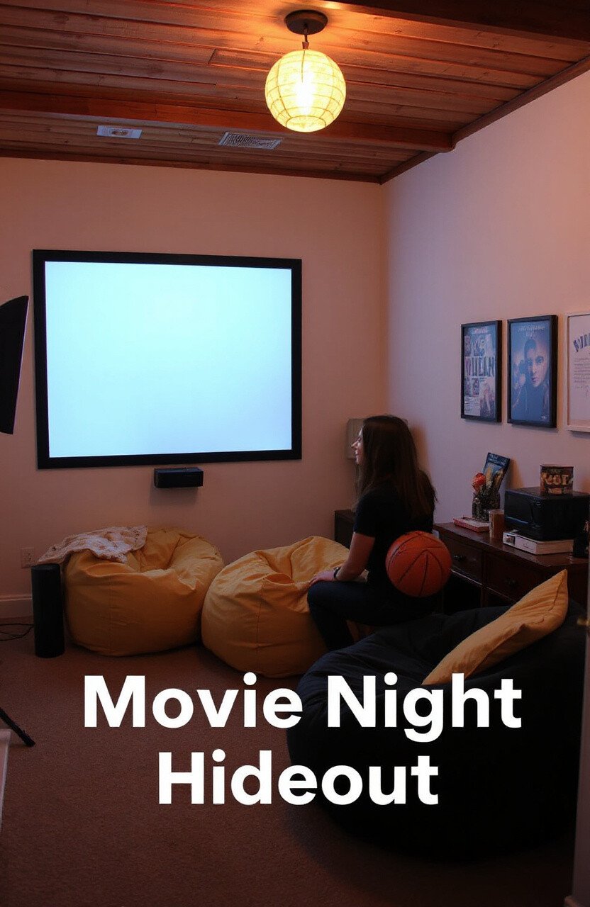 Turn a small corner into a movie night hideout with bean bags, a projector, and a snack station.