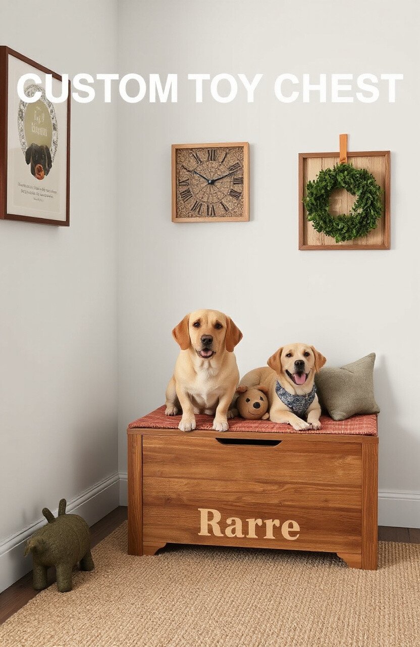 A custom toy chest keeps your dog’s toys organized and out of sight. Choose wood or fabric for a durable yet aesthetic option. Personalize it with your dog’s name for a special touch.