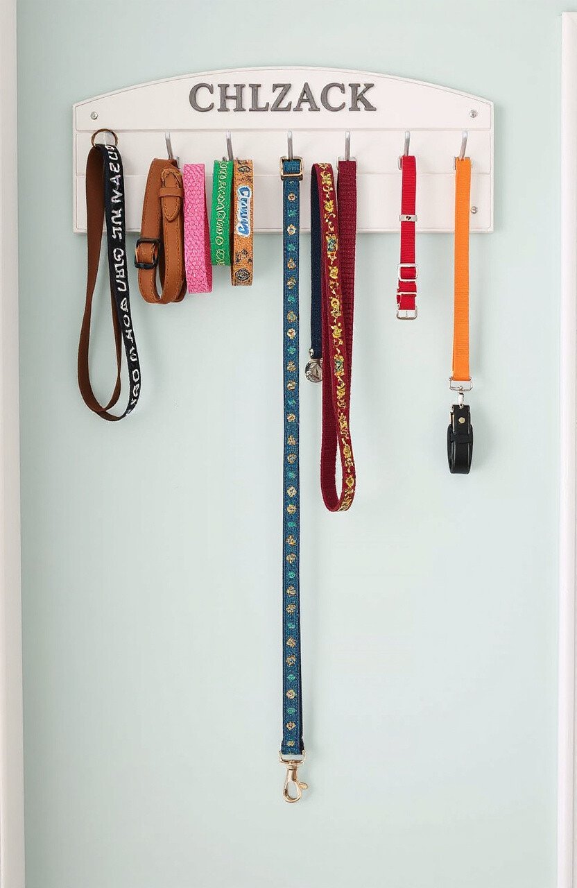 A snazzy collar rack keeps your dog’s accessories organized and on display. Choose a rack with hooks or a shelf for leashes, collars, and harnesses. It’s a practical way to keep things tidy.