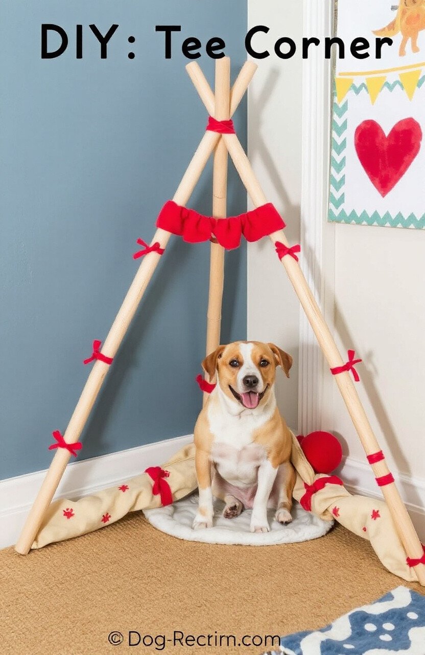 Crafting a teepee tent brings a playful vibe to your dog’s corner. It’s a snug hideaway for your pup, made with love and a few simple materials. Use wooden dowels and some fabric to create this cozy retreat.
