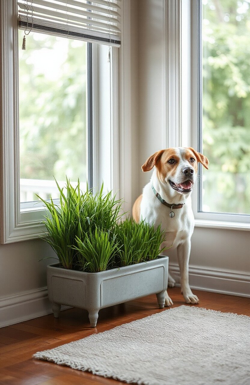 Bring the outside in with an indoor dog garden. Fill a planter with dog-safe grass or herbs like parsley and mint. It’s a natural way for your dog to nibble and sniff.