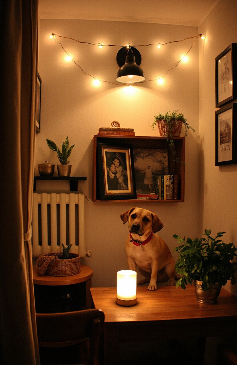 Set the mood with cozy lighting in your dog’s corner. Opt for a soft glow with string lights or a small lamp. Lighting can create a warm and inviting atmosphere.