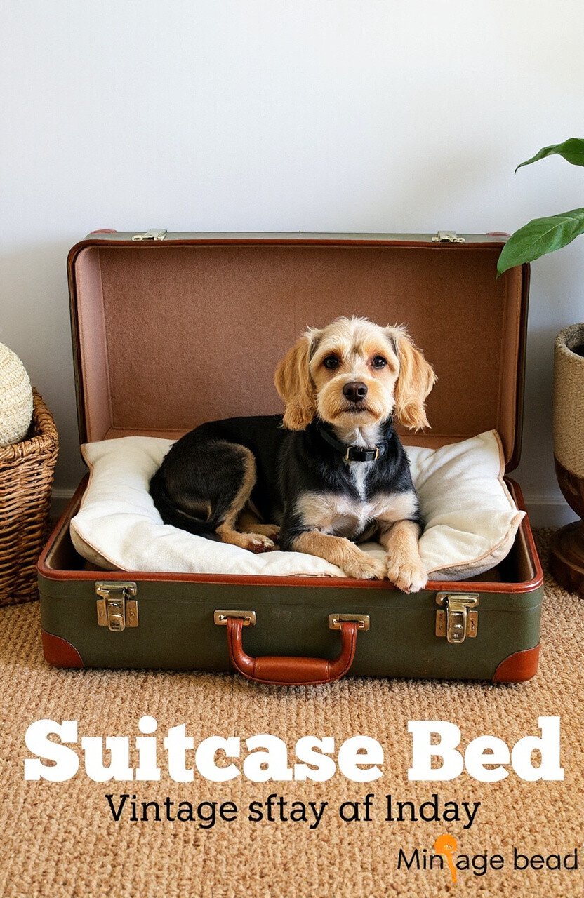 Line the suitcase with a soft cushion, and your dog will have a unique, cozy spot. It’s an eye-catching piece that blends function and style.