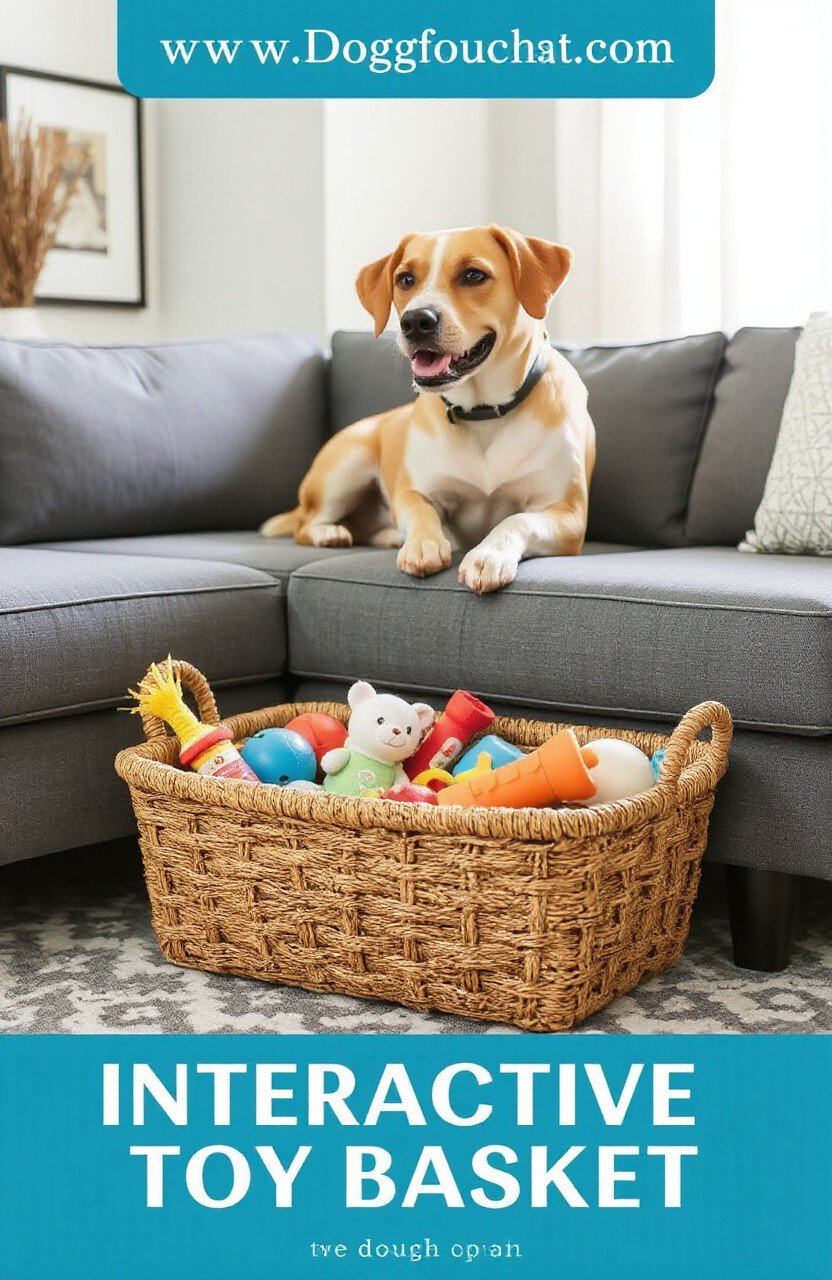 Place an interactive toy basket near your dog’s couch. This keeps toys organized and within easy reach for playtime.