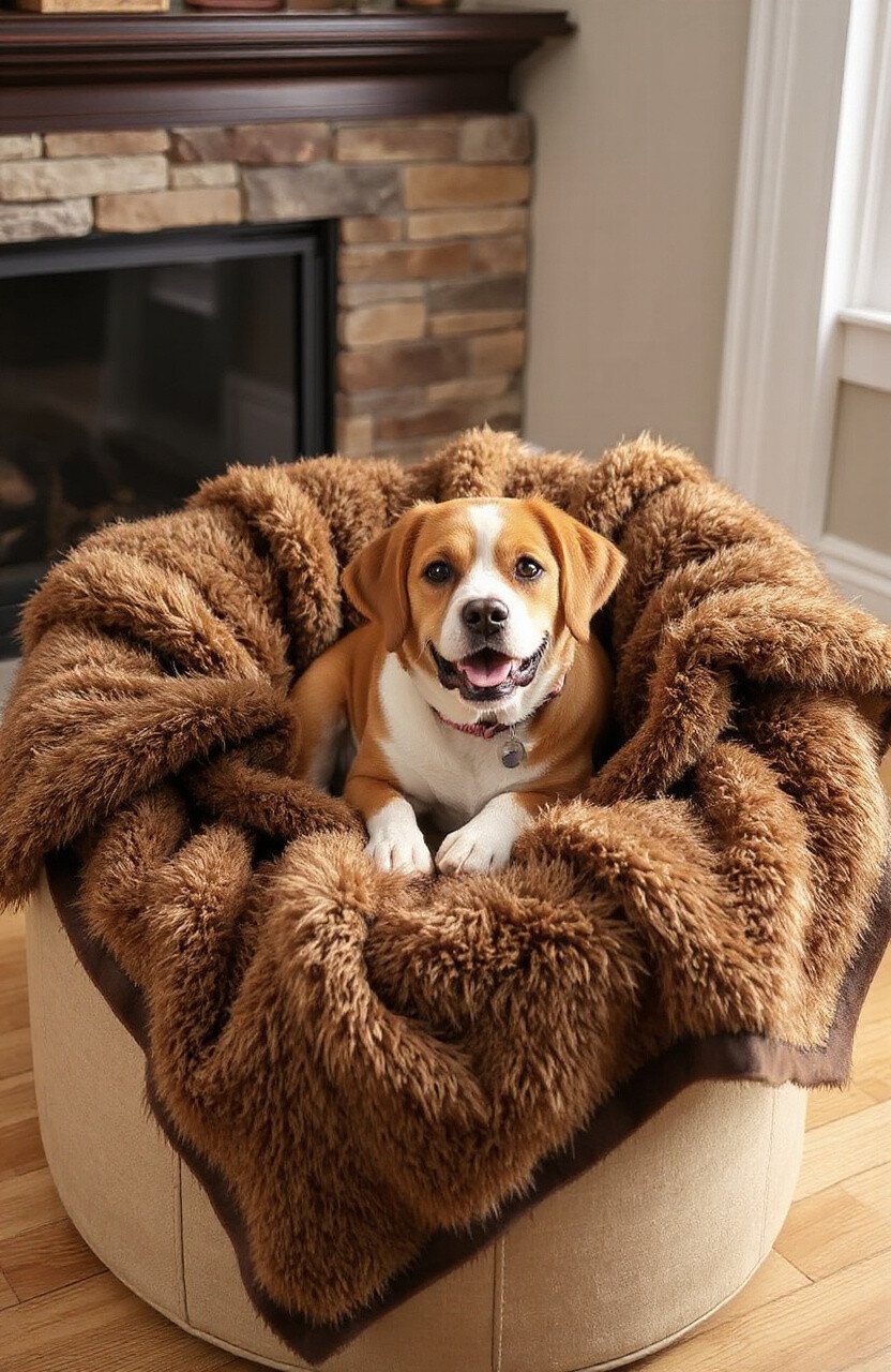 For a luxurious touch, consider adding a faux fur throw to your dog’s couch. These throws offer a plush, soft surface that’s perfect for napping.