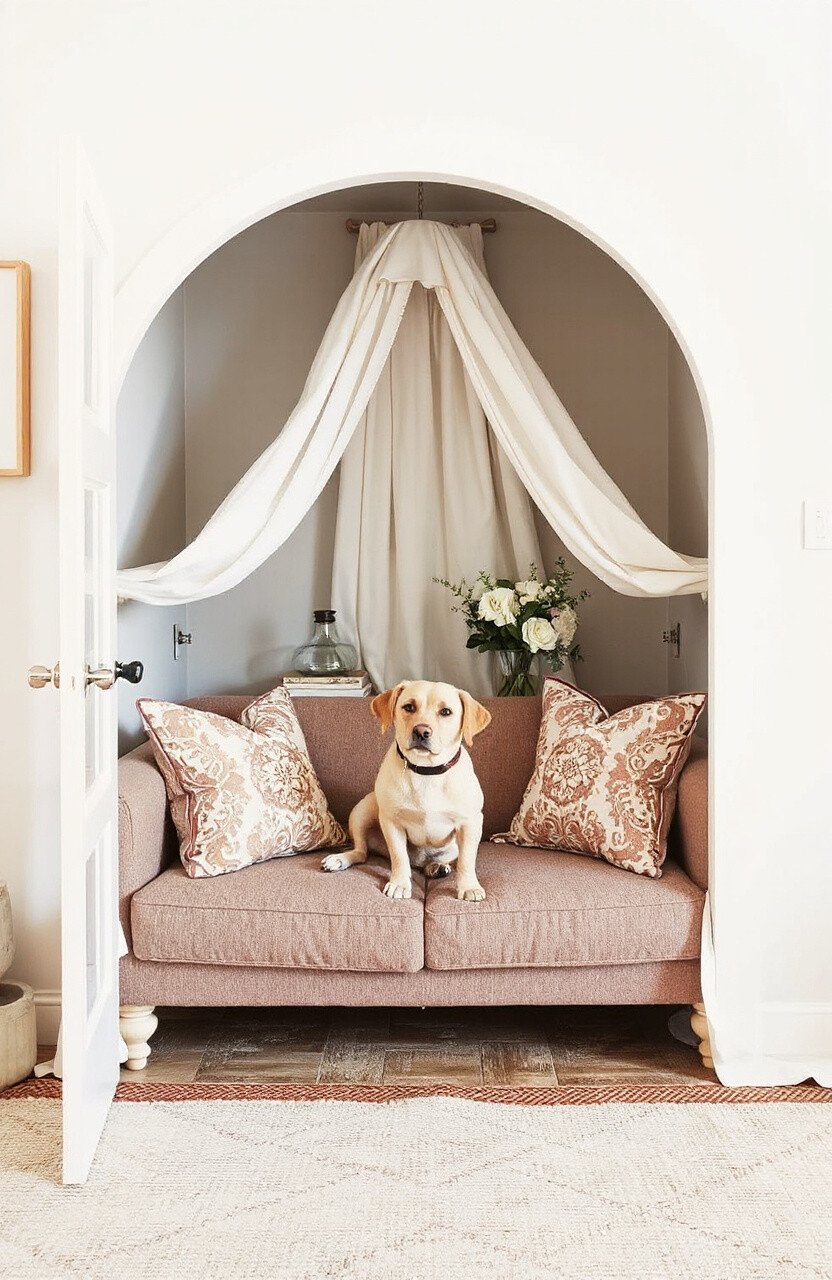 This decor trend is both stylish and practical, creating a retreat for your dog while enhancing the room’s aesthetics.